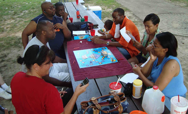 You all might see it as a picnic. We think of it more like a reunion, even though the attendees are not blood relatives. A few years ago, we began planning an event where each family would invite two other families, rent a picnic zone and actually have a full-blown reunion of sorts. We went so far in our planning as to consider having T-shirts printed that said “The 1st Annual _____ Family Reunion”. There really was going to be an underline (_______) in the title. The backs of the shirts would show the last name of each family. If it proved successful, we would have done it annually. In the end, we decided to just keep it simple: get together and invite whomever we chose and have spontaneous fun. We might do the “Blank Family Reunion” someday, but for now, we just go with the flow.