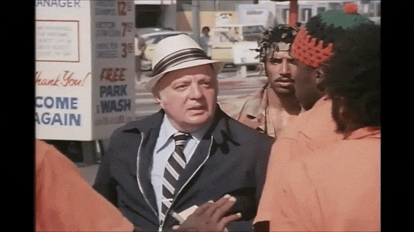 Scene: As Black Muslim revolutionary and frustrated employee, he delivers two serious and memorable scenes: (1) His physical outburst after termination from the job, especially when his boss calls him by his birth name “Duane” instead of “Abdullah”; and (2) his emotional breakdown after his thwarted robbery attempt. Both moments are, in my opinion, the two high points of the entire movie; which is bizarre, because it’s a comedy.