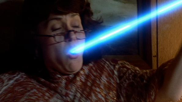 And how many of you lost your popcorn when Silver Shamrock customer/distributor Marge tampered with the circuitry in back of the mask’s badge, causing it to misfire? What followed resulted in the first and only time I EVER looked away from a screen in horror and disgust during a movie.