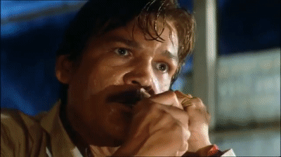 It also had a great “crowd applause” moment when hero Daniel (Atkins) discovers a way to escape and destroy Cochran and ALL of his “men” through the sabotaging of their computers and the Stonehenge boulder (one can’t help but laugh at the movie’s sappy explanation of how they stole and transported it to America with Cochran’s open-ended line, “You wouldn’t believe how we got that here. We had a DEVIL of a time…”). And did you make the connection to the news story in the background at the beginning of the movie, when they said one of the stones was mysteriously missing?