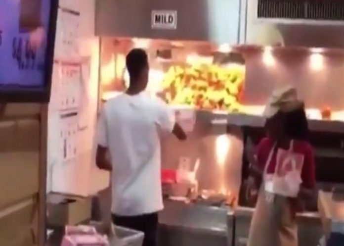And then, there’s the footage of an ignorant fool walking behind the counter at Popeye’s and filling his own order.