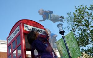 I suggested this center as the location because although there were only 100,000 telephone booths remaining in the United States, it had one of them.  As an added bonus, it was colored red, one of Superman’s colors.
