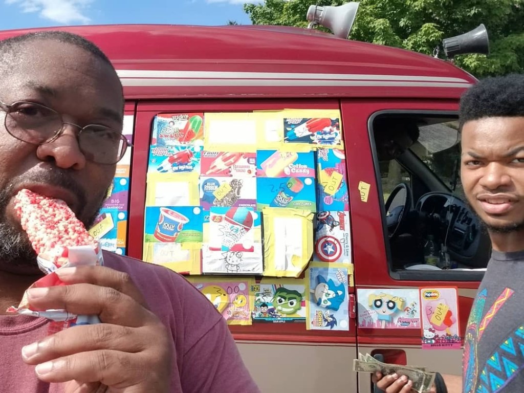 “Dad! Stop the ice cream truck!!!” Brandon yelled from inside.