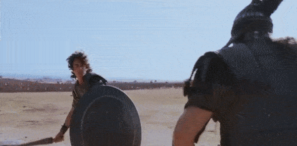 The two square off and Paris engages in single combat with his larger and exceptionally battle-seasoned opponent: