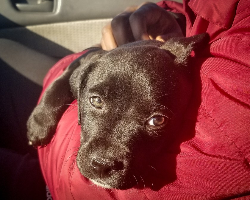Chico was terrified. And yes, it looks like he’s looking at me to save him. Unbeknownst to Chico, he was headed to the vet for his first formal exam. If he knew he’d be getting a shot, that might have bothered him as well. But this face? We can attribute this to his fear of being in a car in motion – which was something I hadn’t expected. Considering my childhood memories of my pet dogs and other canines who eagerly poked their heads out of car windows with tongues happily wagging, this is the last thing I thought possible.