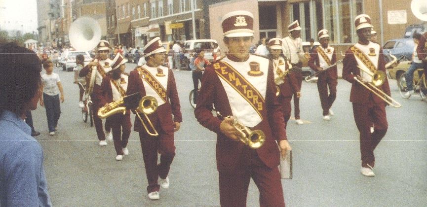During the summer after my 8th grade, we got our first taste of a marching band, playing for the junior high school. Later that summer, we were permitted to join the high school band, even though we had not yet entered our freshman year.