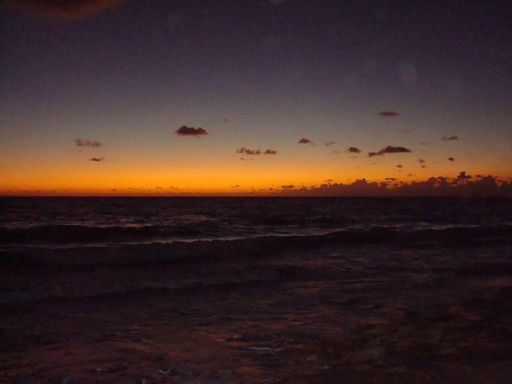 Sunsets on the beach are breathtaking. Watching the glow of the sun fade into the clear, watery blue horizon is like the soundless dousing of a match in a swimming pool.