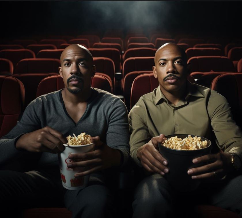 As I purchased my ticket, I spotted him in the distance at the front of the line at the concession stand. He was being handed two large buckets of popcorn (because dudes don’t share) and two large drink cups. But despite his muscular frame and looks that made the ladies do double-takes, he insisted on catching people off guard with his antics. He playfully looked up at me and, in a very effeminate voice, yelled, “Kinneeeeeeeee!”