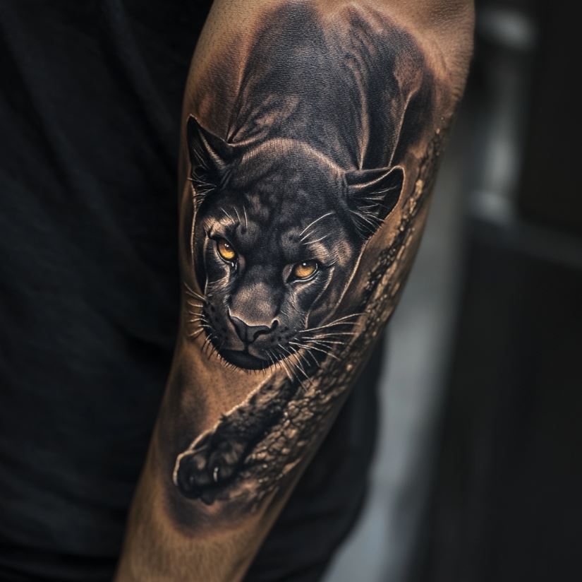 My favorite animal is the Black Panther and has been, long before it became a thing in film with the Marvel Cinematic Universe. My tattoo would be an overhead view of that fierce cat, crawling down the side of my arm as he would a large tree branch.