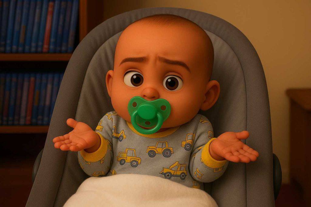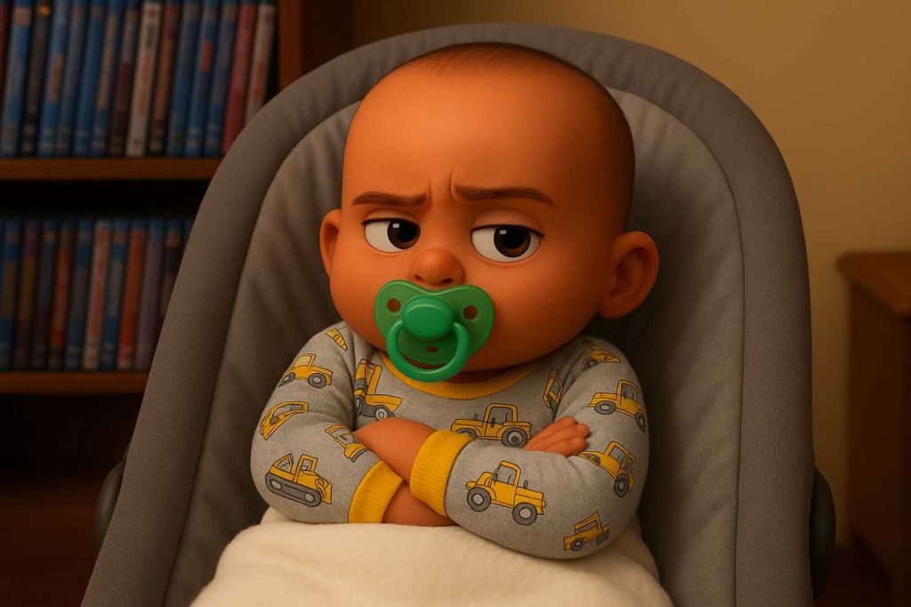 I looked at Kamari who sucked once on his pacifier before shrugging his shoulders as if to say, “Dude, you didn’t specify and you never said NOT to lie. You just told her not to blame ME. You’re gonna need her one day when she grows up and becomes a contract lawyer.”