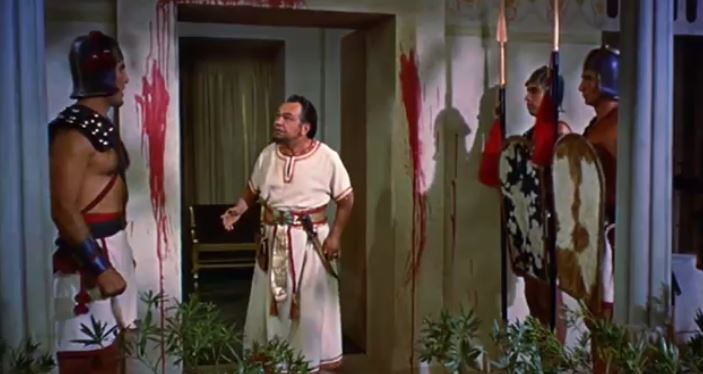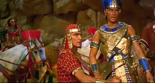 No sooner than Moses leaves, Rameses begins to hear the roll of thunder in the distance, soon followed by the hail and fire on the ground. It’s not the scene, but the look of confidence on Rameses’ face before and during the thunder’s roar. One of the movie’s funniest WTH moments.