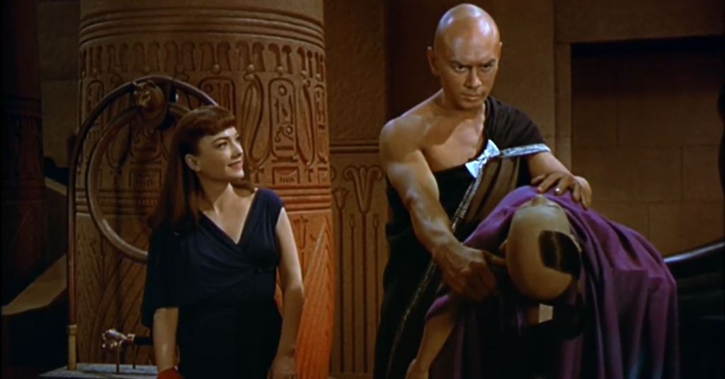 But the most popular of them all is Cecil B. DeMille’s timeless 1956 masterpiece, The Ten Commandments, starring Charlton Heston (Moses), Yul Brynner (Rameses), Anne Baxter (Nefretiri), Edward G. Robinson (Dathan), Yvonne De Carlo (Sephora), John Derek (Joshua) and a strong cast of others.